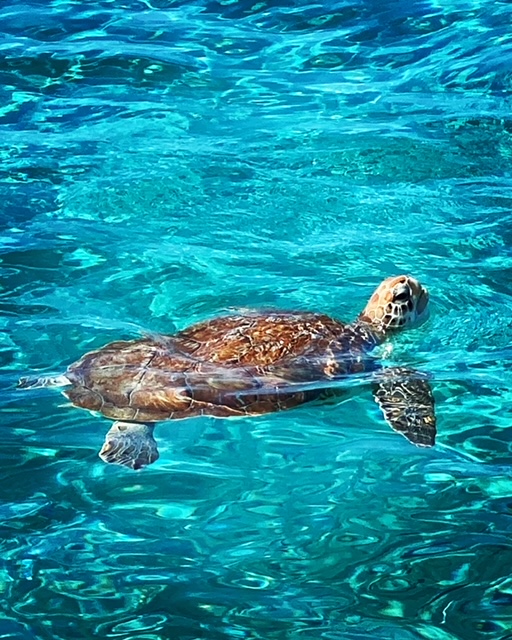 Er zwemmen soms wel meer dan tien schildpadden tegelijk op zoek naar voedsel. Wat belangrijk is om in je achterhoofd te houden als je hier gaat zwemmen of snorkel is dat je ten allen tijde de schildpadden de ruimte geeft. Ga vooral niet achter ze aan en probeer ze al helemaal niet aan te raken. Drijf rustig met je snorkel en camera in het water en ze komen vanzelf langs.