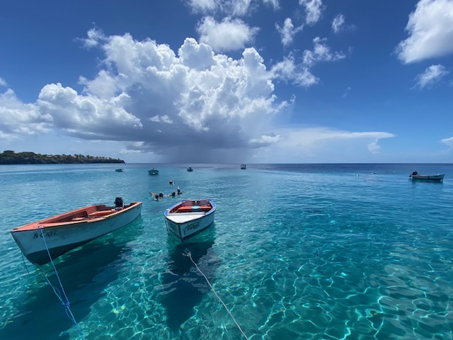 Blijf je tot zonsondergang op Porto Marie dan ben je getuige van een van de meest mooie zonsondergangen van het eiland!